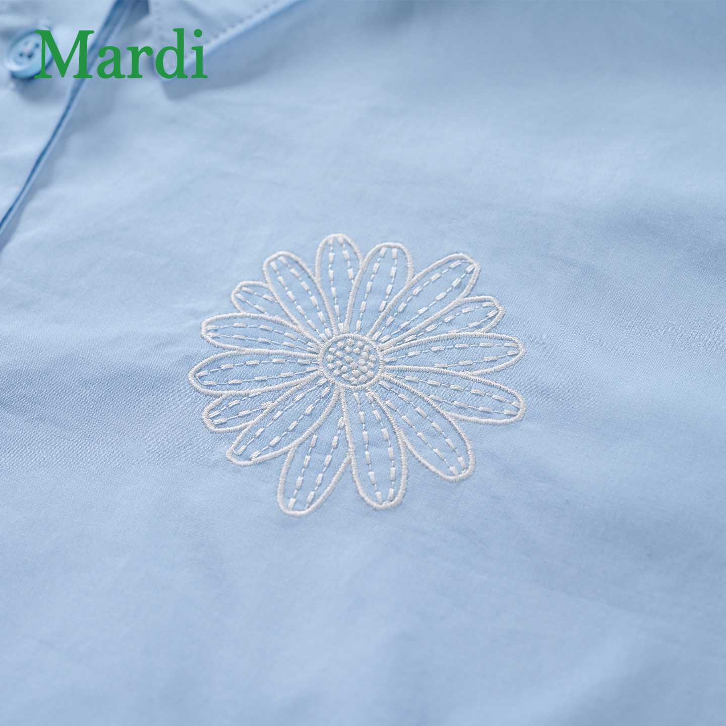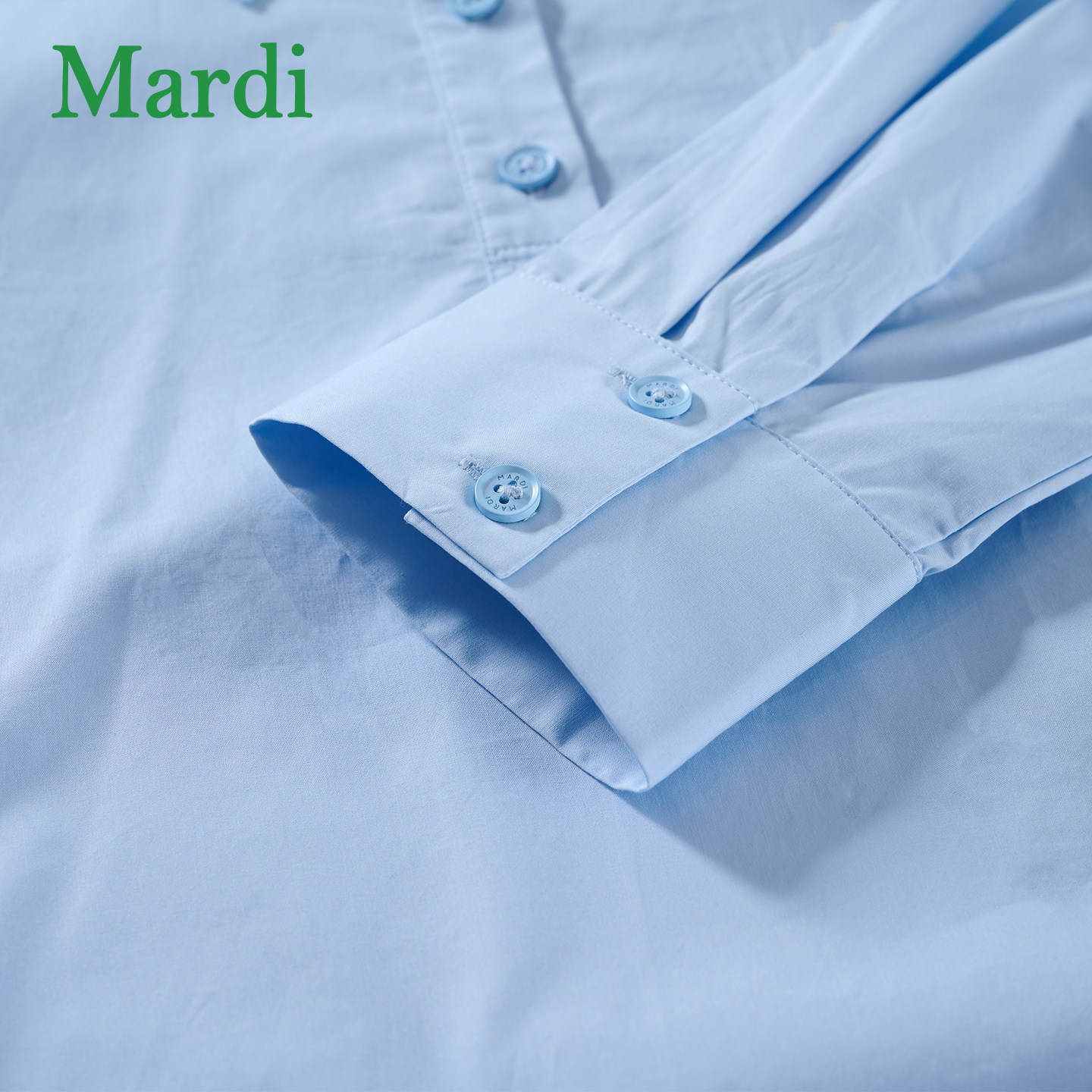 MARDI极简风蓝色长袖衬衫女短款抽绳收腰翻领上衣通勤休闲风宽松