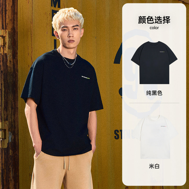 准者纯棉运动T恤短袖男士夏季新款潮流宽松美式印花圆领半袖上衣
