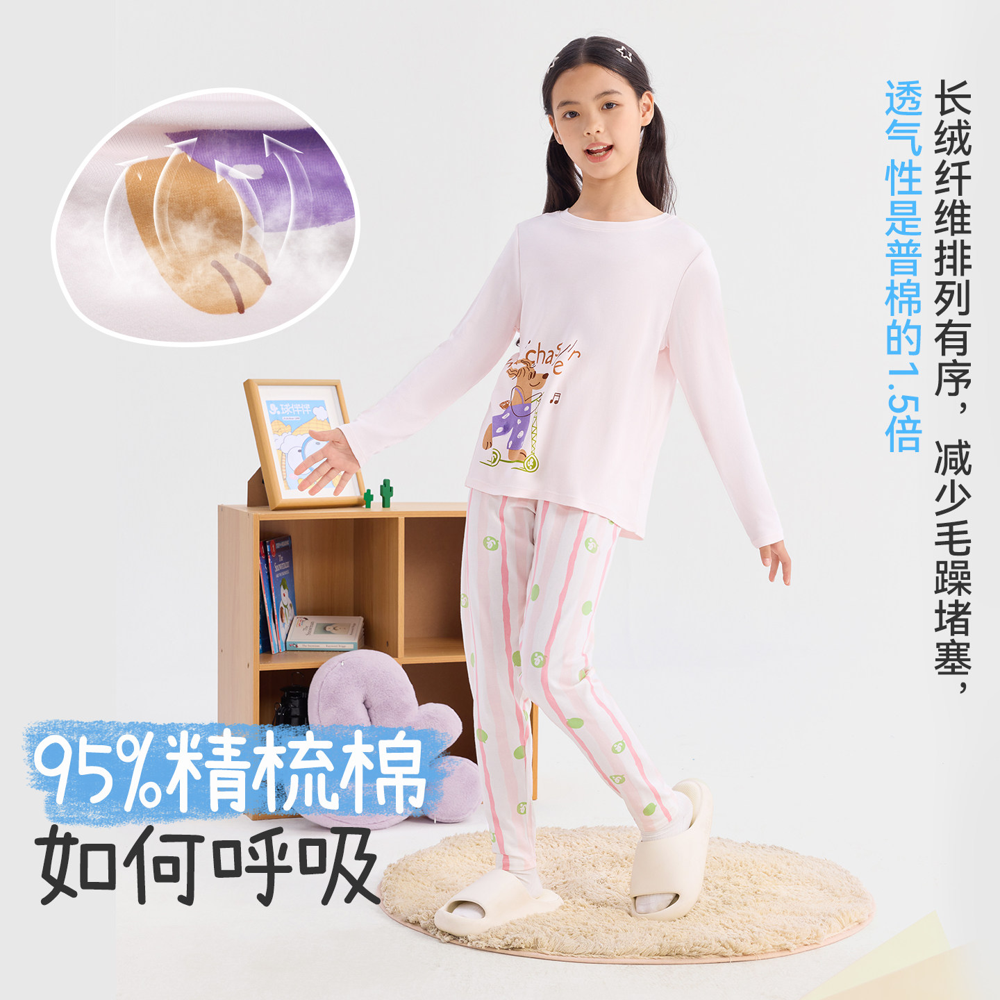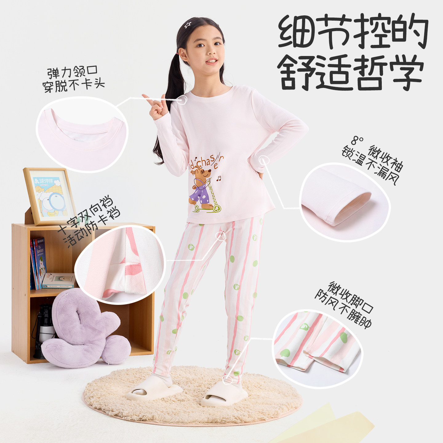久岁伴儿童秋衣秋裤女春秋2026款a类家居服中大童纯棉睡衣套装