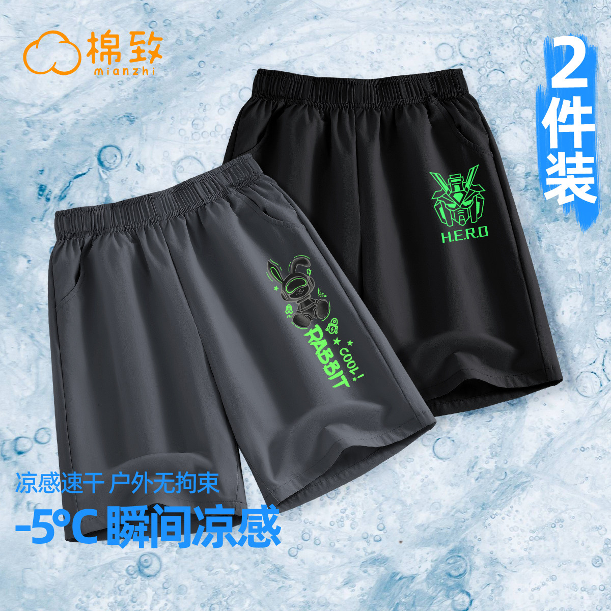 棉致男童夏款裤子儿童短裤夏季2025新款冰丝速干五分裤男大童夏装