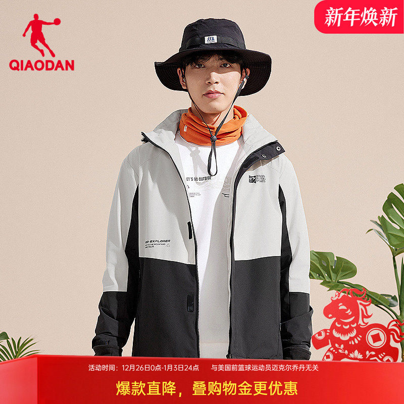 乔丹户外三合一风衣男2025冬季新款保暖防风冲锋黑色外套防水登山