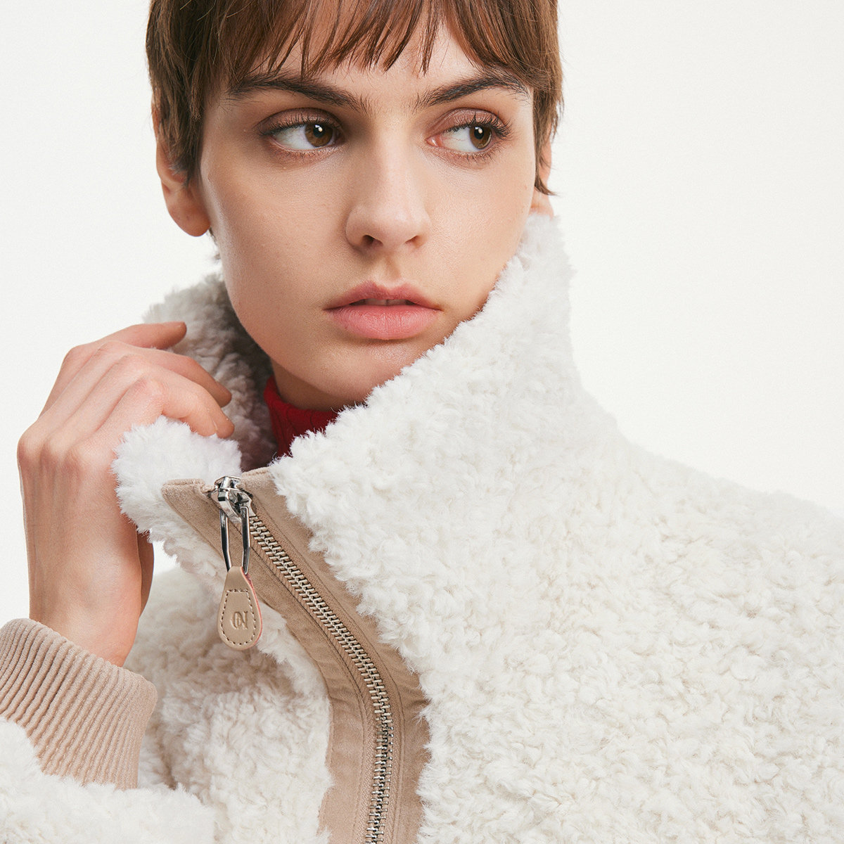 ONLY2026春季新款PU包边仿羊羔毛仿皮草两穿翻领领型棉衣棉服女