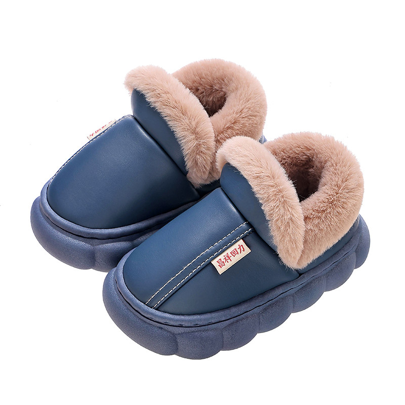 秋冬季儿童棉鞋男童皮面防水亲子加厚女童保暖防水包跟棉拖鞋防滑