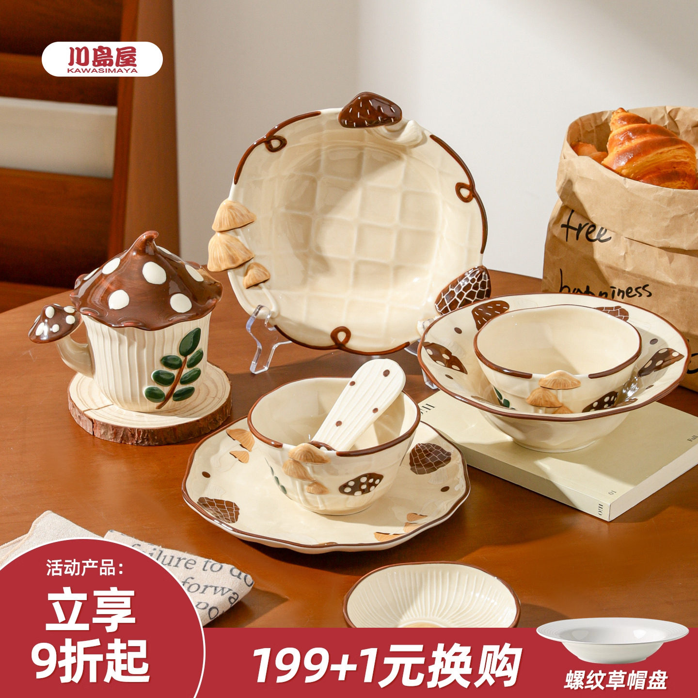 川岛屋蘑菇米饭碗家用2025新款高颜值陶瓷菜盘子马克杯漂亮的餐具