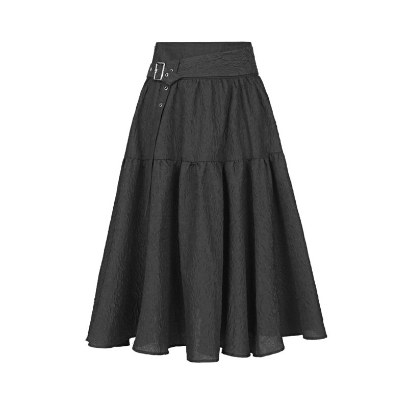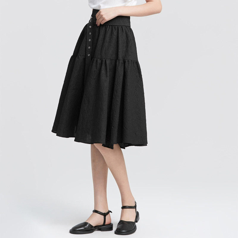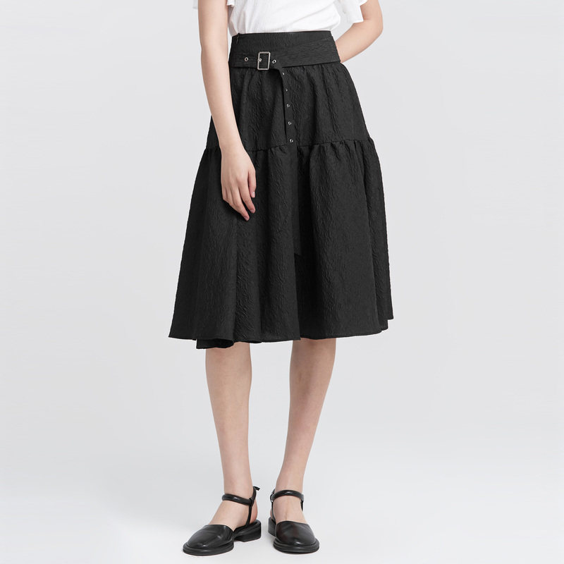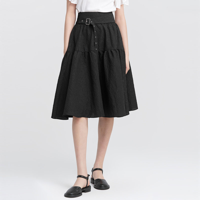 sdeer圣迪奥女装高腰收腰肌理褶皱A字长裙蓬蓬裙S22281108