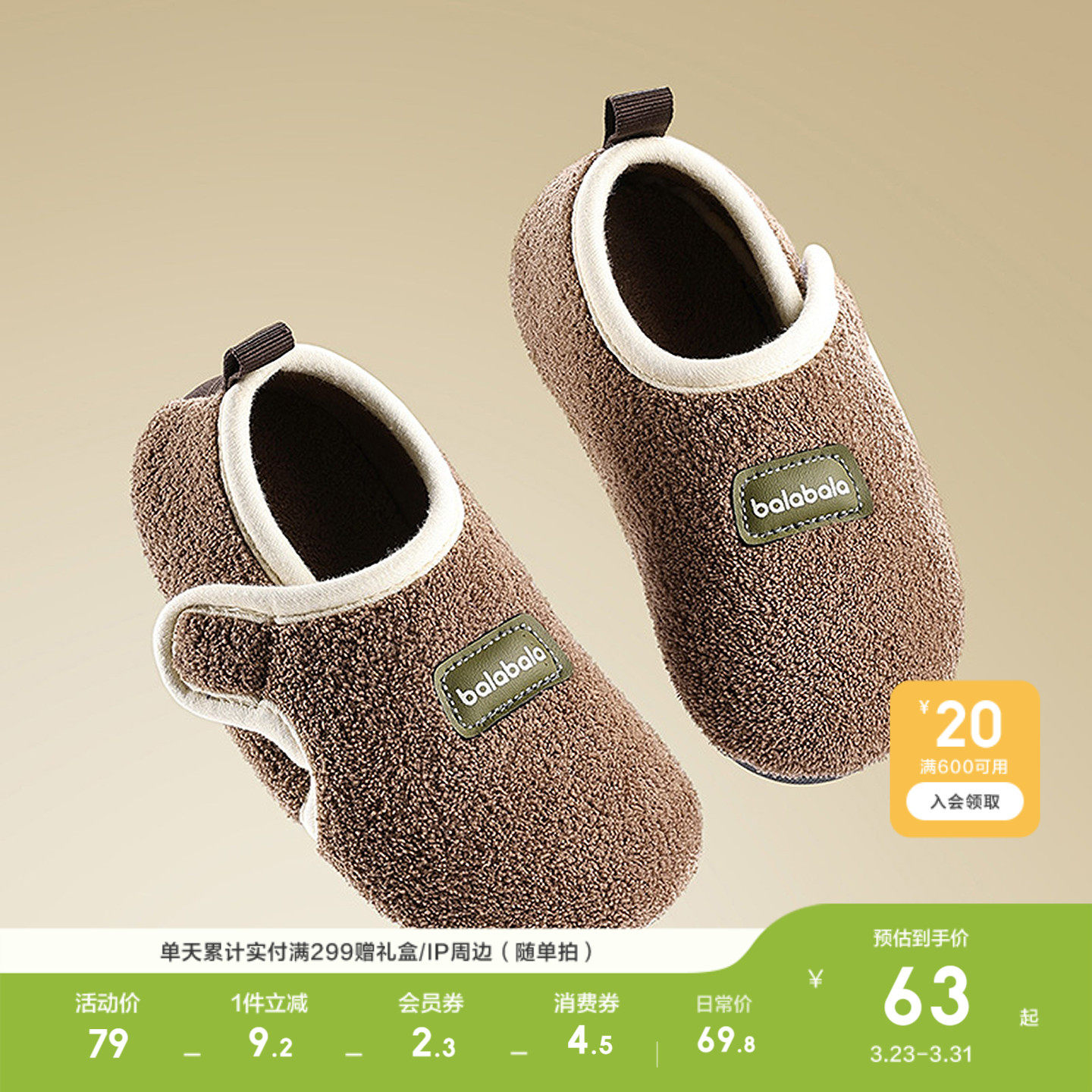 巴拉巴拉童鞋儿童拖鞋男女童年冬季加绒保暖家居鞋包跟棉鞋休闲潮