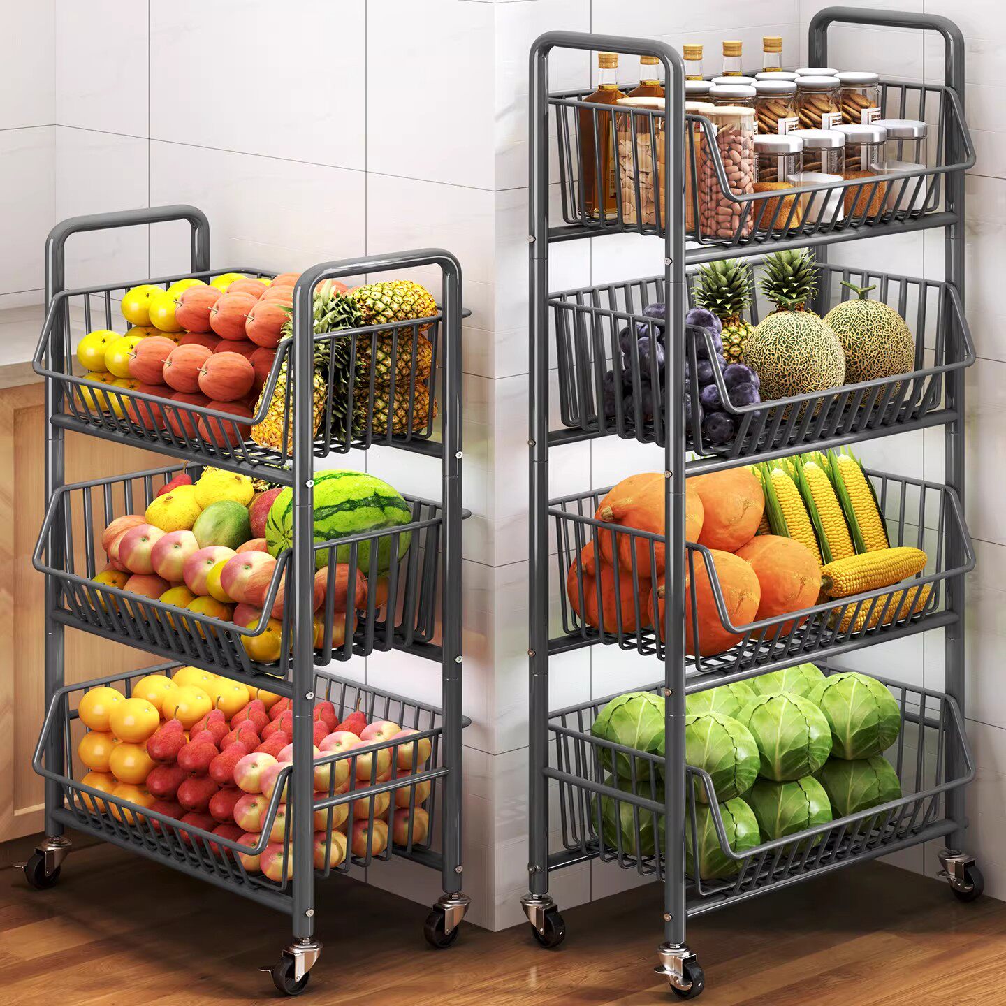 菜篮子厨房置物架落地多层水果蔬菜收纳用品靠墙角移动零食小推车