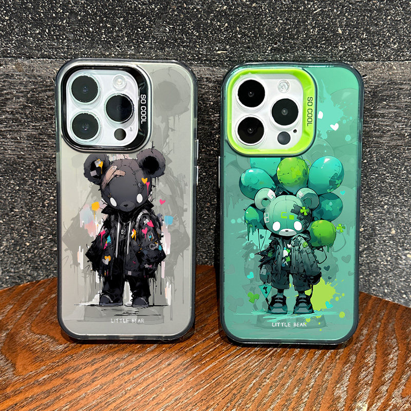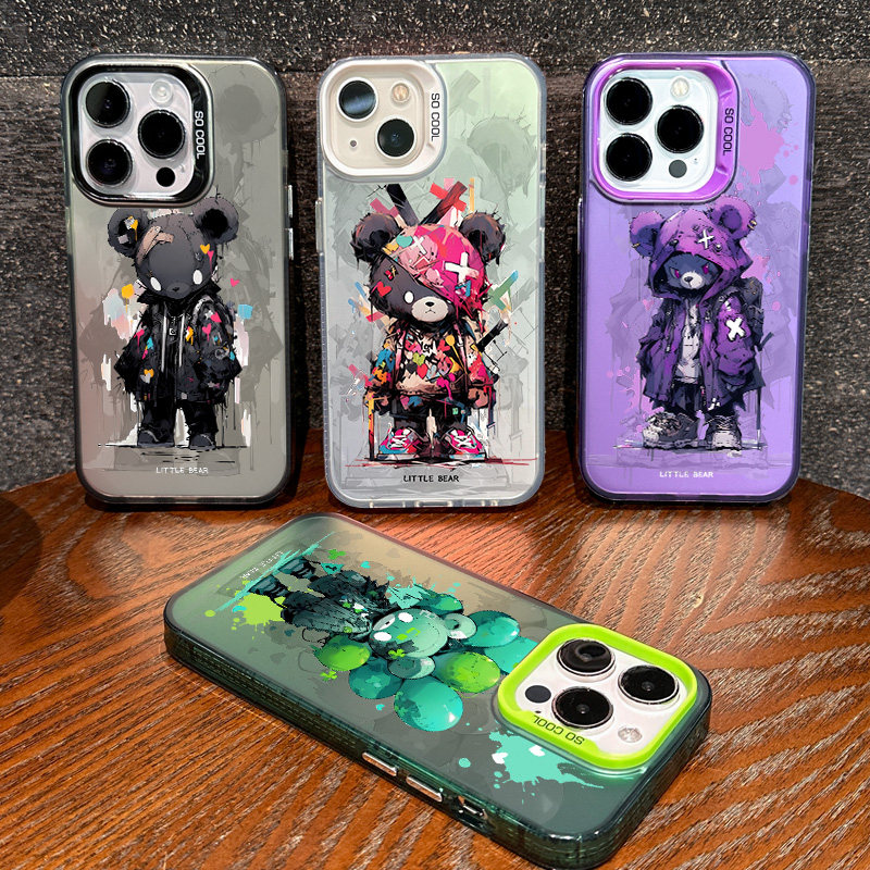 适用于苹果16pro手机壳新款彩银镭射iPhone15pro潮熊14plus男女1312全包防摔11promax磨砂xsmax个性xr保护套