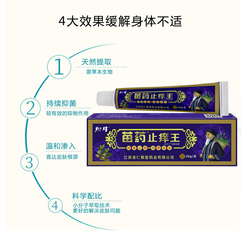 百草真菌王止痒抑菌膏大腿内侧皮肤瘙痒湿毒清红痒清凉降痒草本