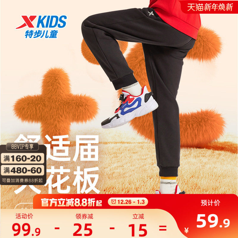 特步童装男童加绒裤子运动裤儿童大童长裤秋冬新款保暖裤冬装卫裤