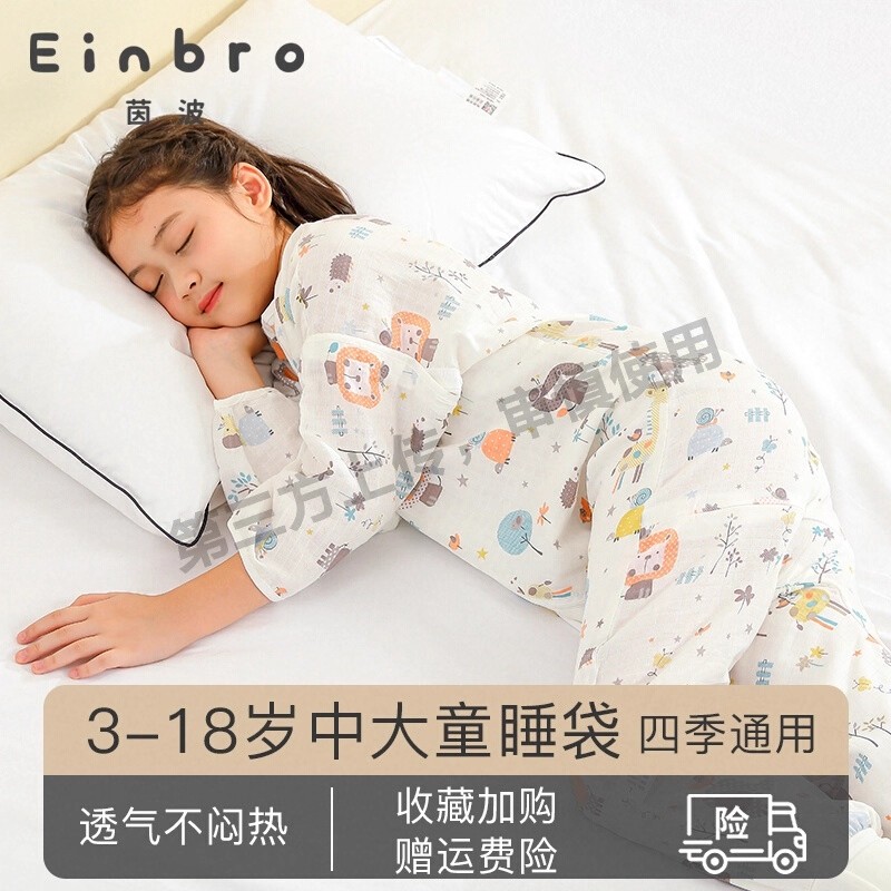 儿童睡袋秋冬季宝宝中大童纯棉女男童睡袍防踢被神器四季通用睡衣