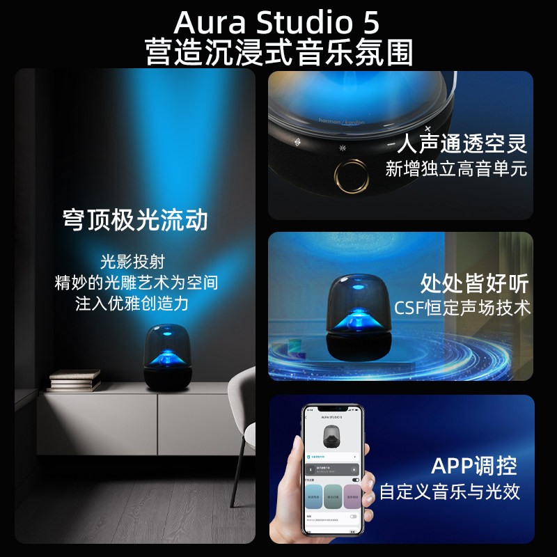 哈曼卡顿音乐琉璃5蓝牙音响2025新款家用桌面氛围电脑音箱礼物