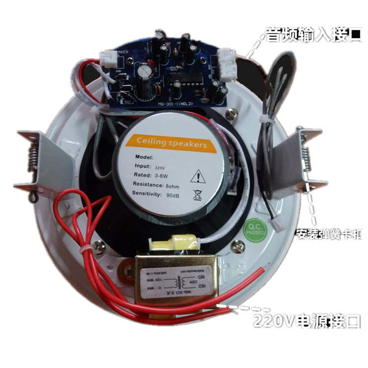 有源吸顶喇叭 天花吊音响 不接功放带音量旋钮 电脑手机监控对讲