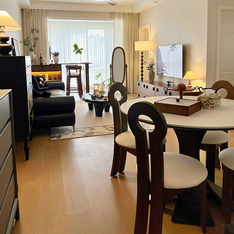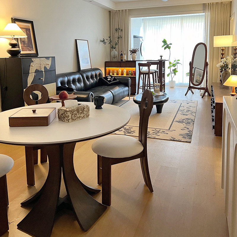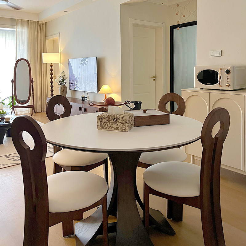 奥古斯特窈窕实木餐桌圆桌小户型意式轻奢中古风白色哑光岩板餐桌