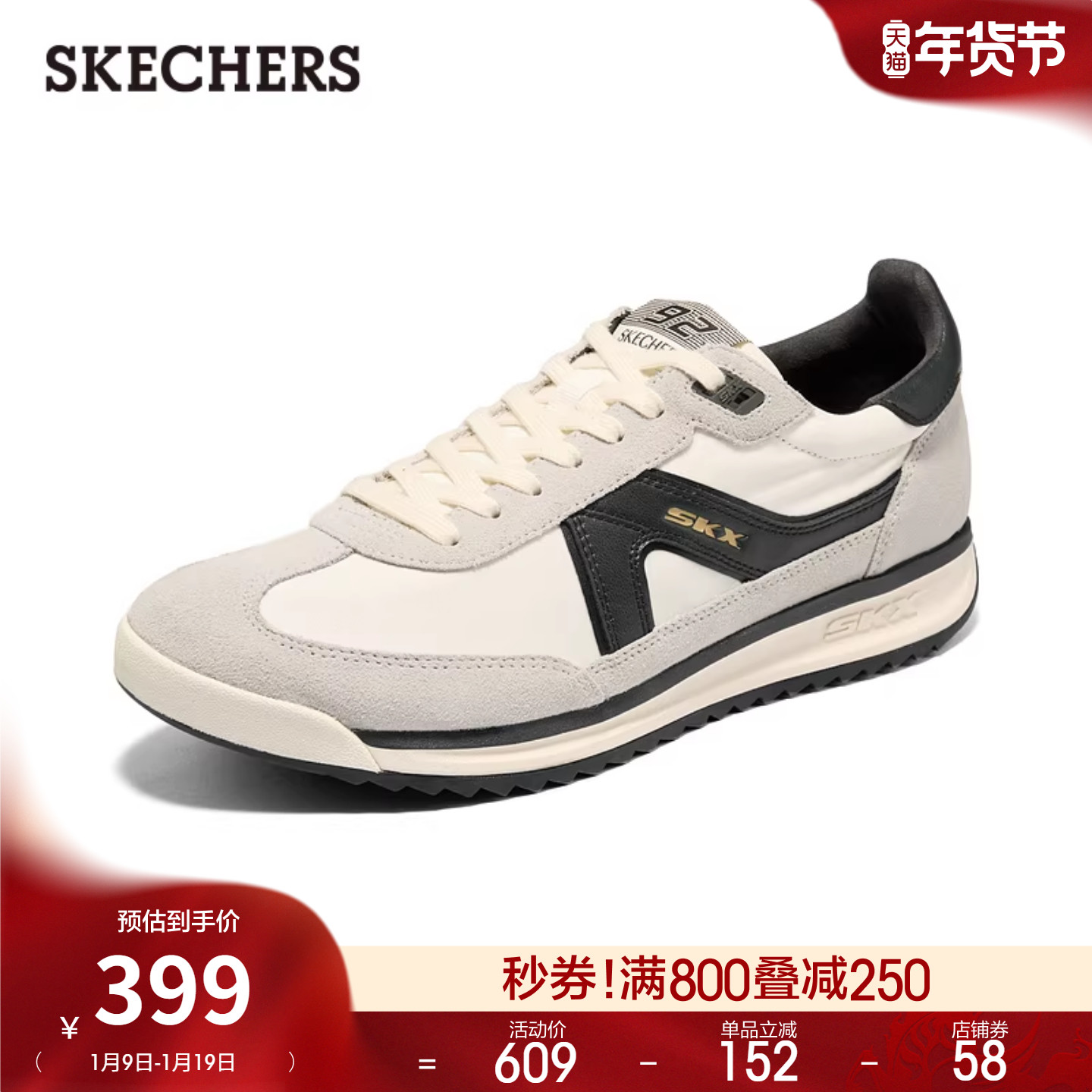 斯凯奇2025秋冬新款男平底休闲鞋时尚简约运动风T头德训鞋阿甘鞋