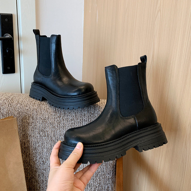 胖mm秋冬英伦风厚底粗跟切尔西靴大筒围短靴马丁靴加宽大码女鞋41