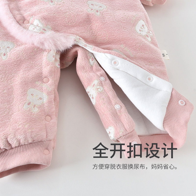 babycare冬季保暖山茶花连体衣宝宝包屁衣新生儿爬服外出婴儿衣服