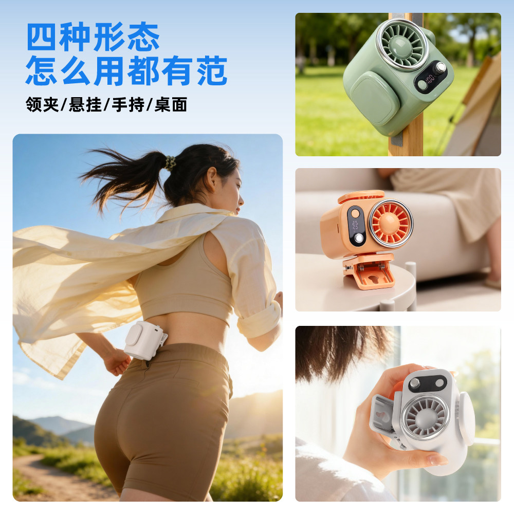 能适2026新款小风扇迷你大风力超长续航夹伞挂腰间桌面风扇轻音usb充电随身便携式手持制冷户外夏天降温神器