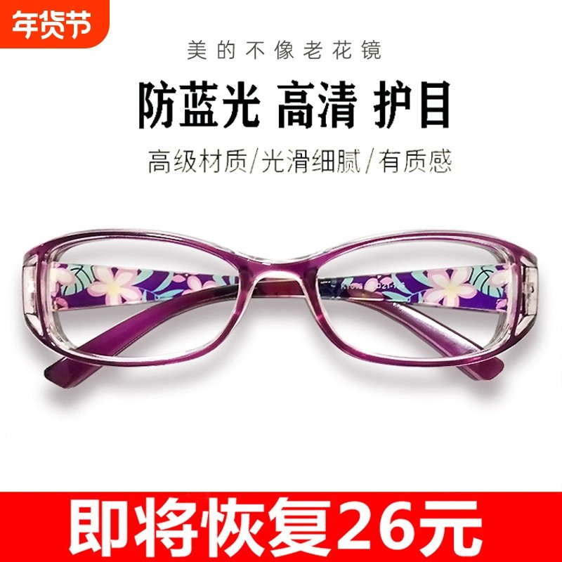 老花眼镜女士防蓝光抗疲劳时尚超轻高清老人进口老光正品防辐射