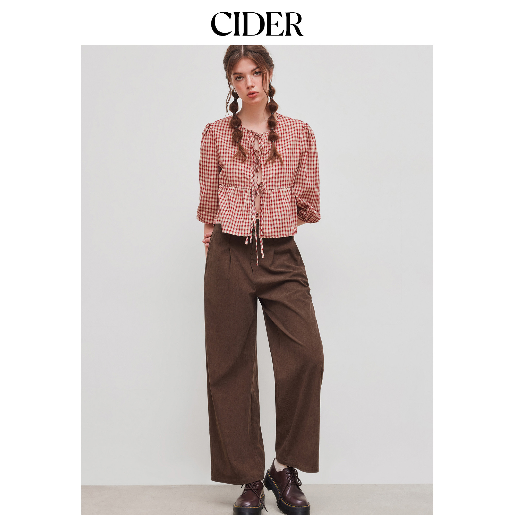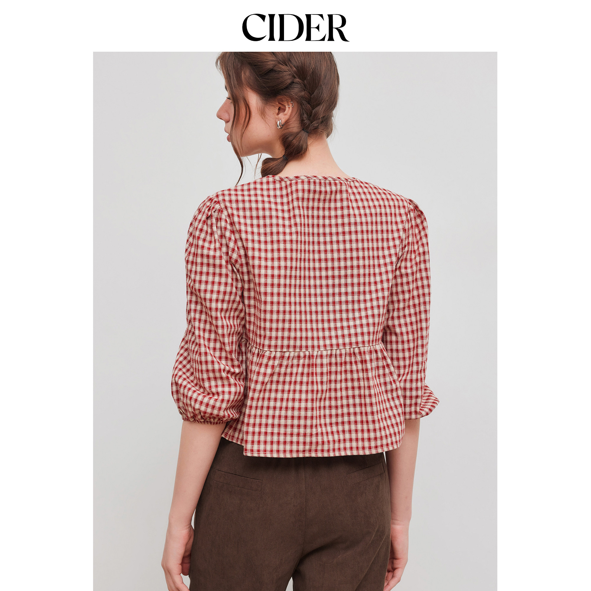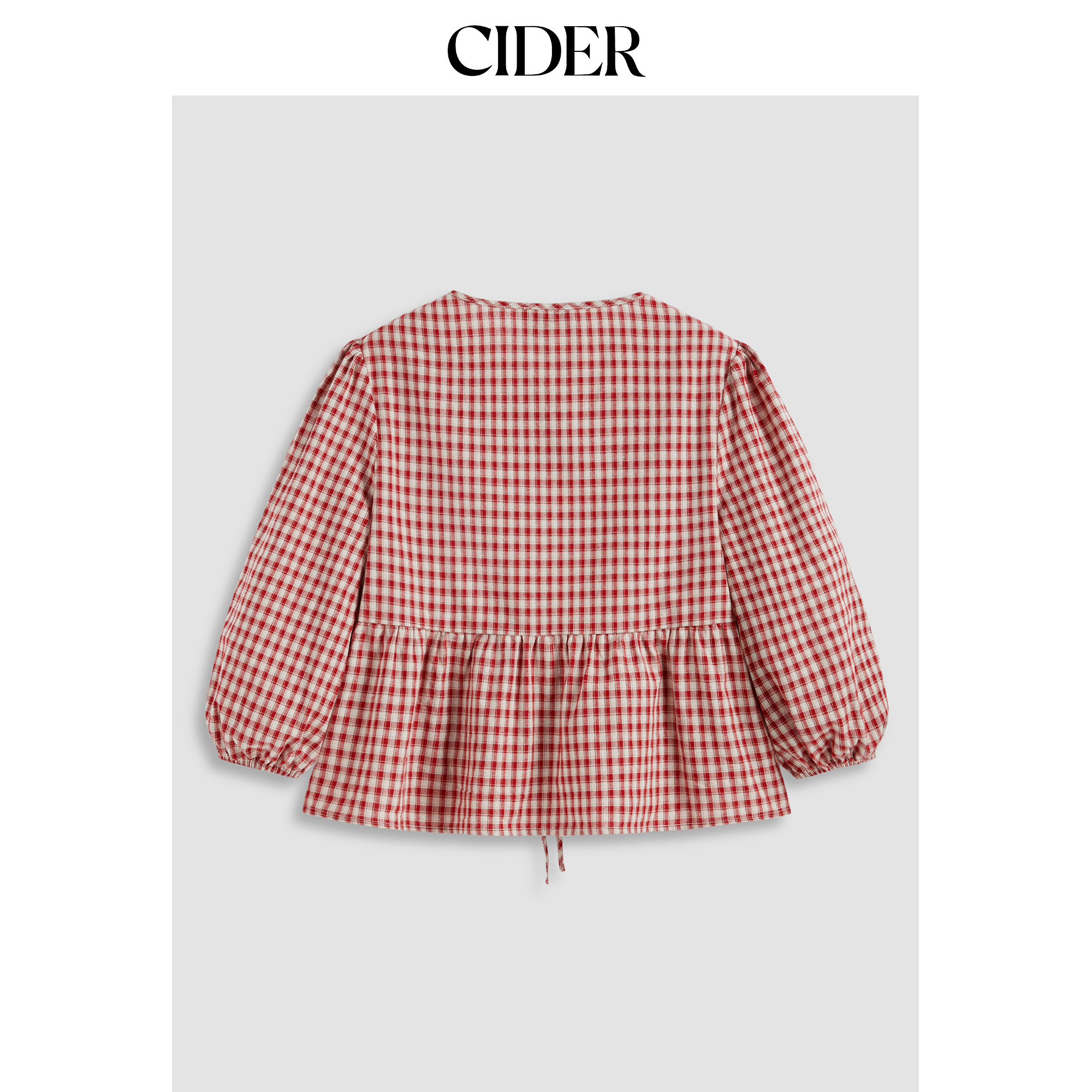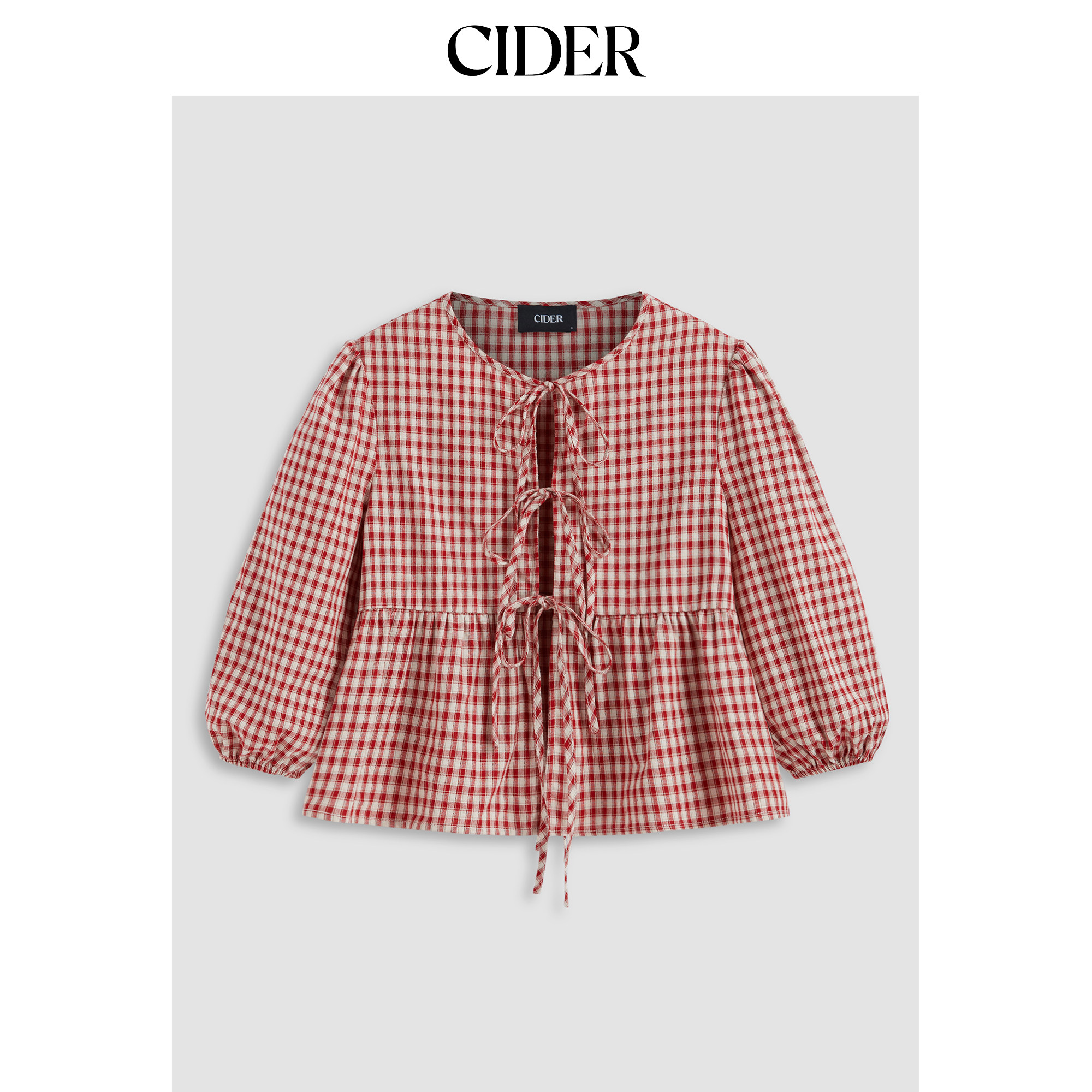 【明星同款】CIDER 正品棉格纹系带圆领衬衫女装113930818