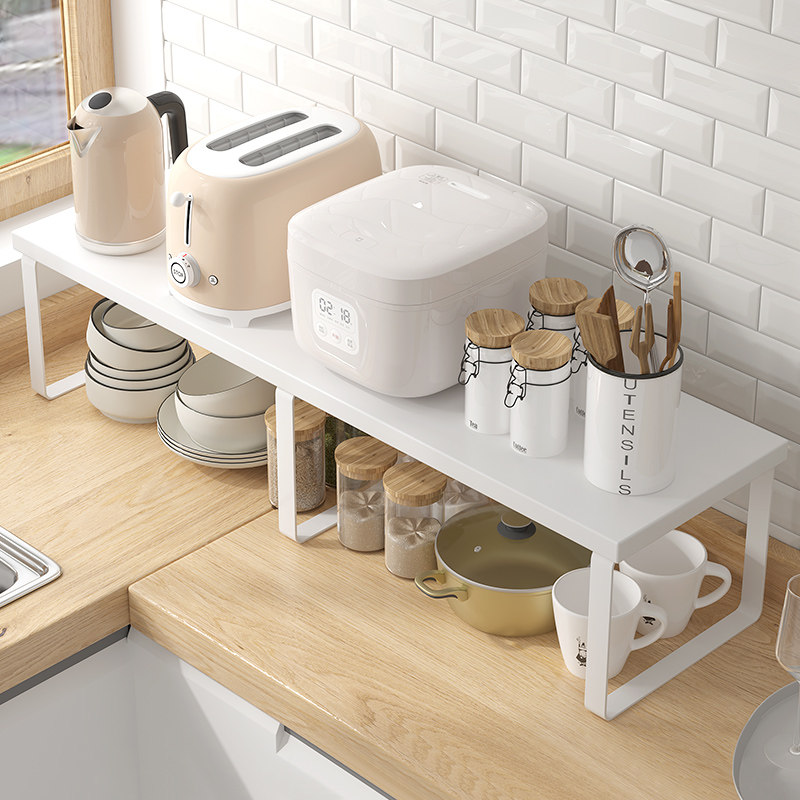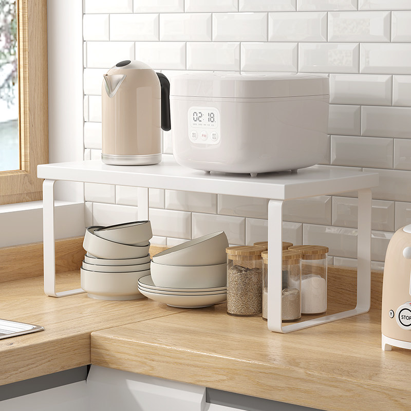 台面厨房分层置物架白色桌面储物架收纳橱柜内隔板调味料盘子锅架