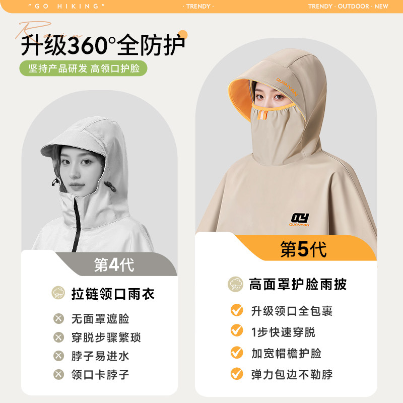 360°全包裹设计+高领护脸弹力领口+牛津布