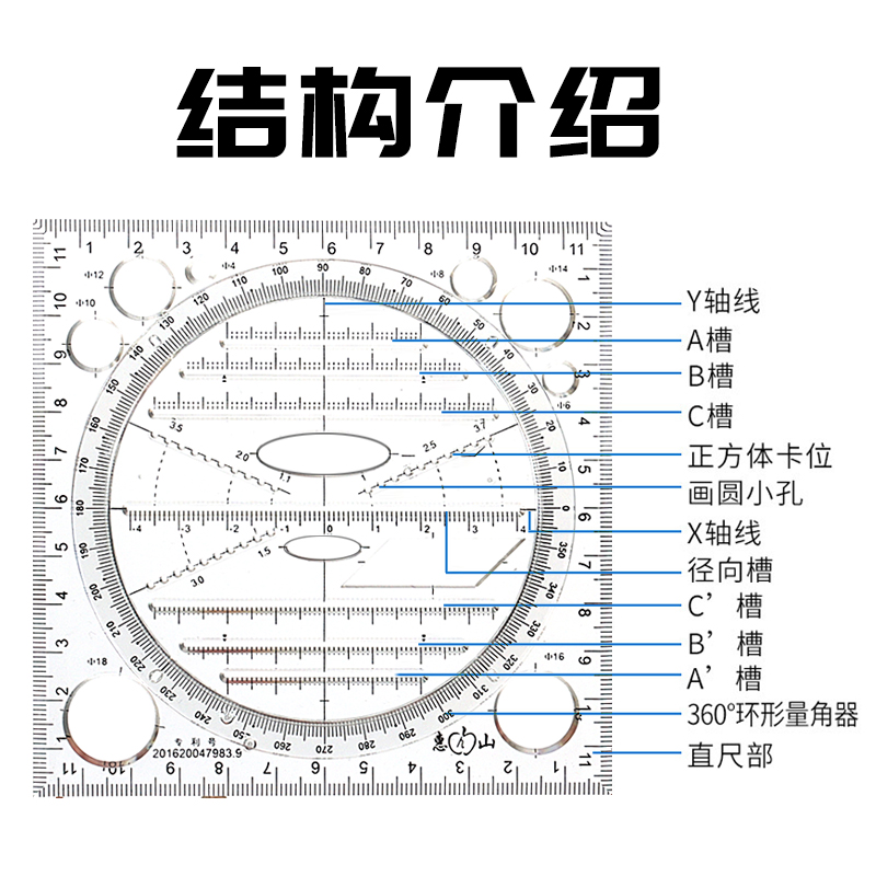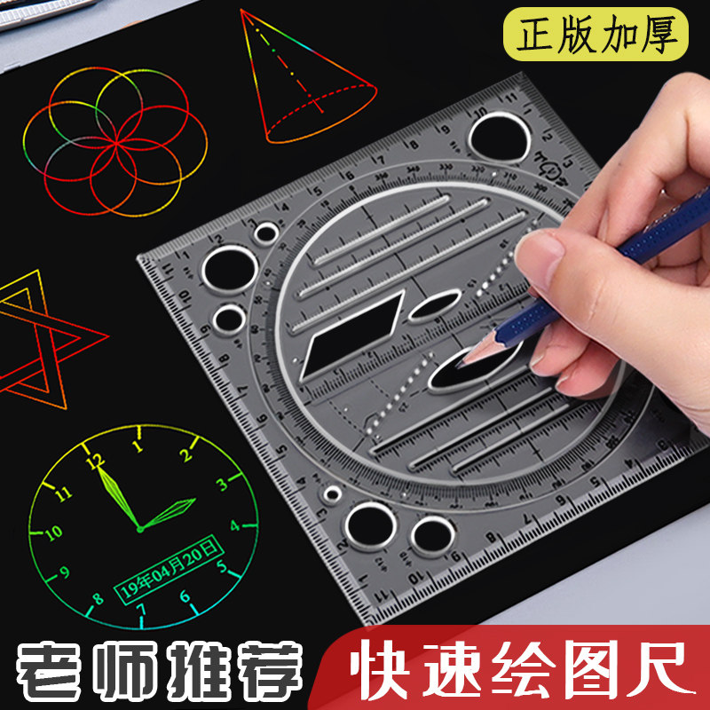 函数几何尺多功能绘图尺子套装可旋转快速画圆几何图形尺椭圆模板尺测量手账设计考研量角器考试工具三角直尺