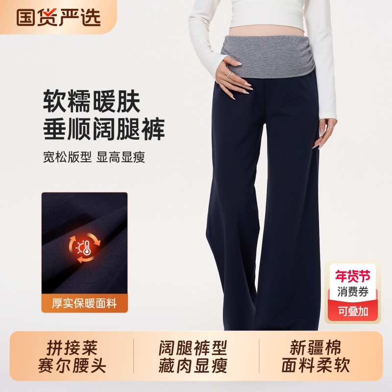 孕之优品孕妇裤秋冬外穿2025新款垂感加绒糯米裤无托腹孕妇阔腿裤