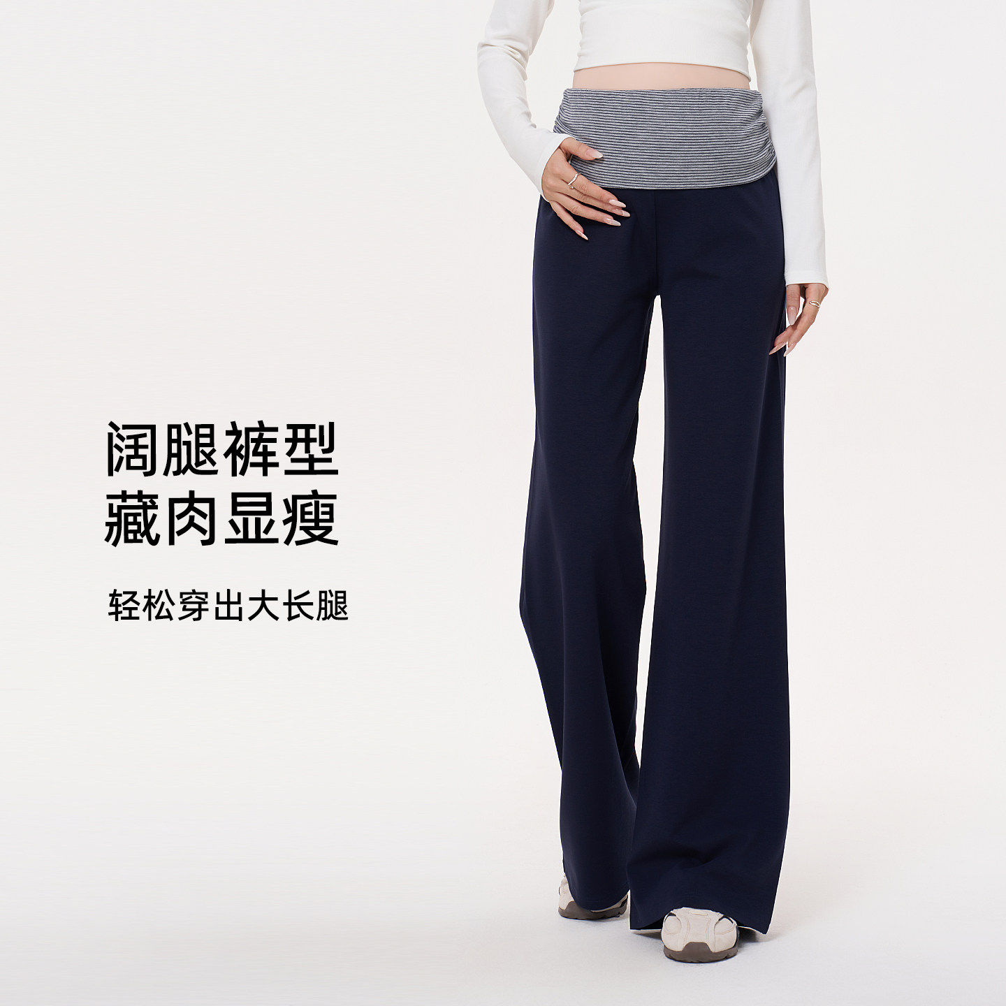 十月结晶孕妇裤秋季小个子垂感阔腿裤松紧腰部无托腹长裤2025新款