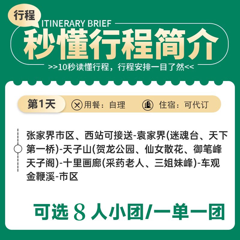 【8人纯玩小团】张家界旅游森林公园袁家界天子山十里画廊一日游