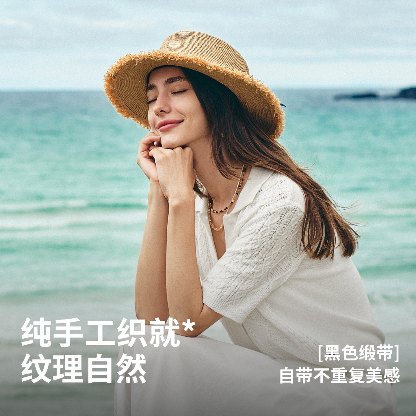 navigare意大利小帆船手工编织沙滩遮阳帽夏季优雅度假宽檐草帽