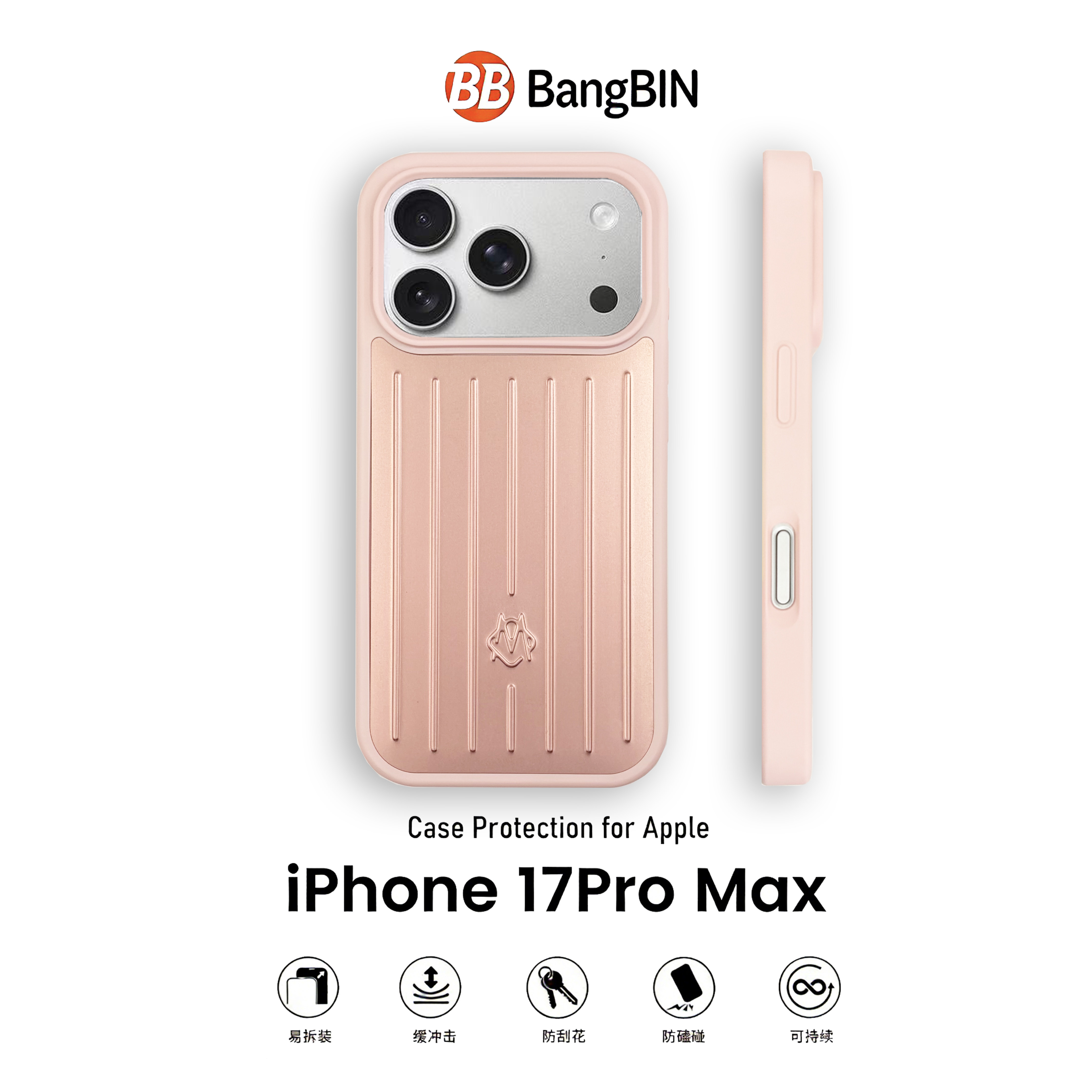潮牌磨砂橙色日默瓦行李箱纹适用苹果17手机壳新款iphone17promax手机壳全包防摔苹果17Pro手机壳保护套男女