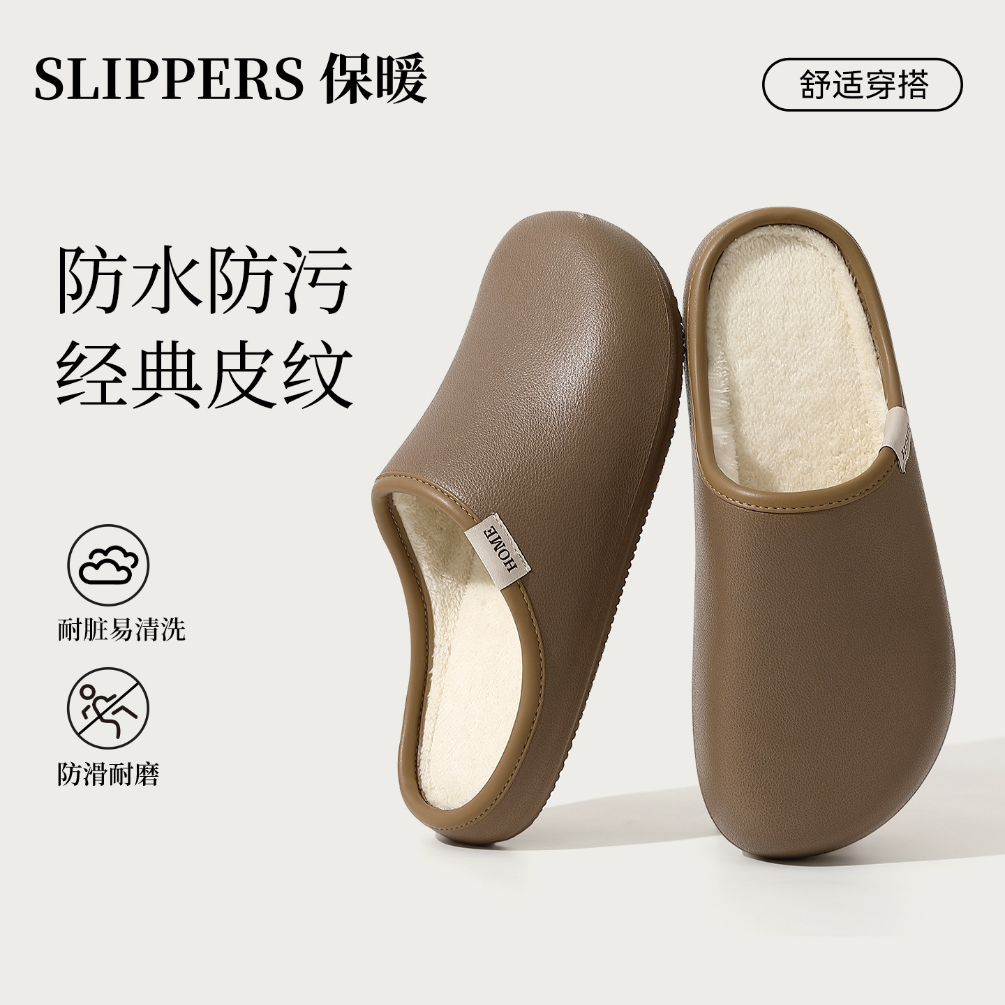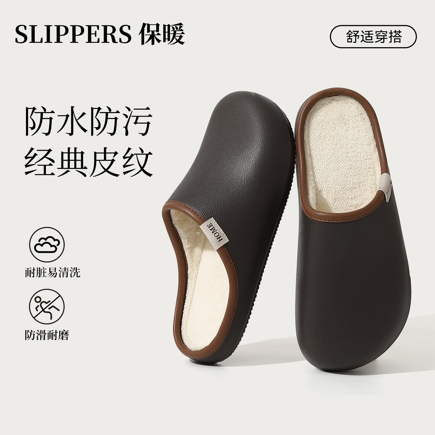 朴西棉拖鞋女士秋冬季厚底简约保暖室内居家用软底防滑情侣棉拖男