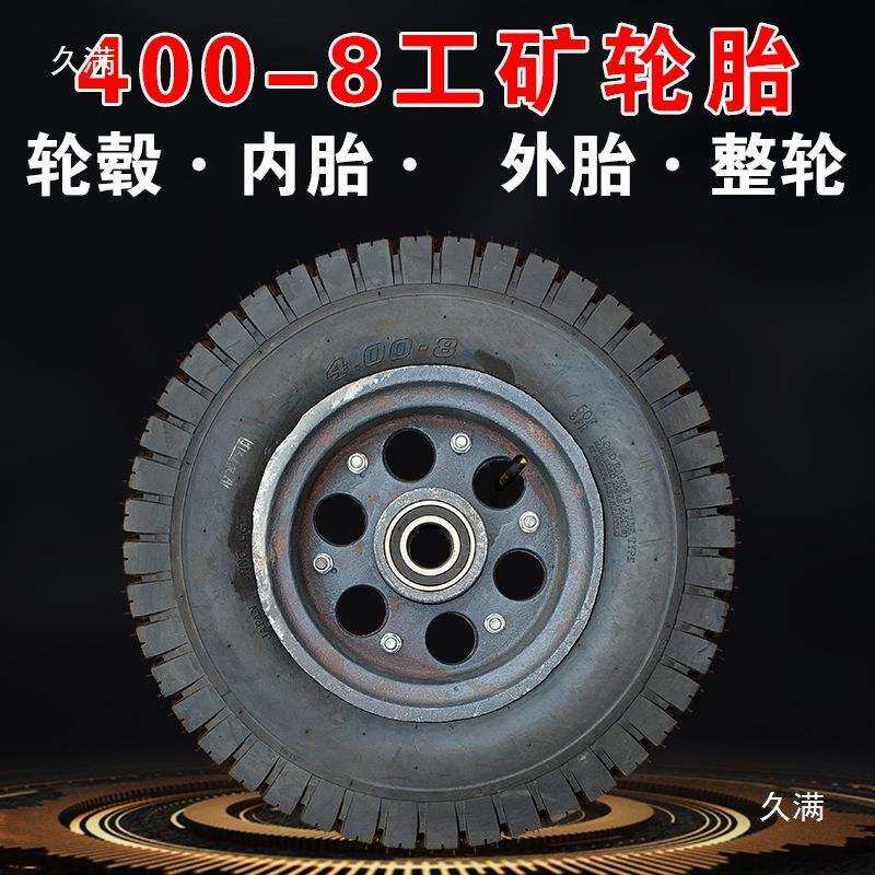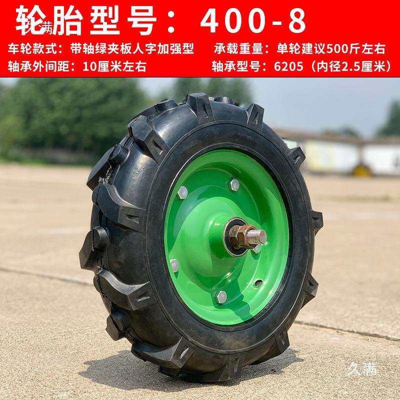 农用400-8脚轮充气轮橡胶实心轮带轴重载独轮滚轮手推车加厚单轮