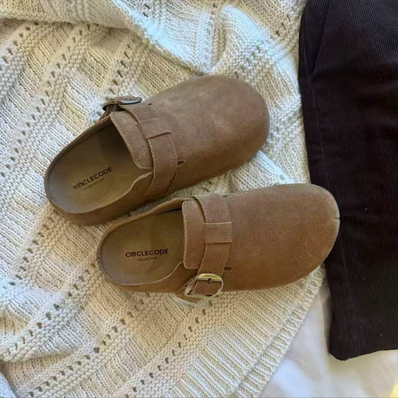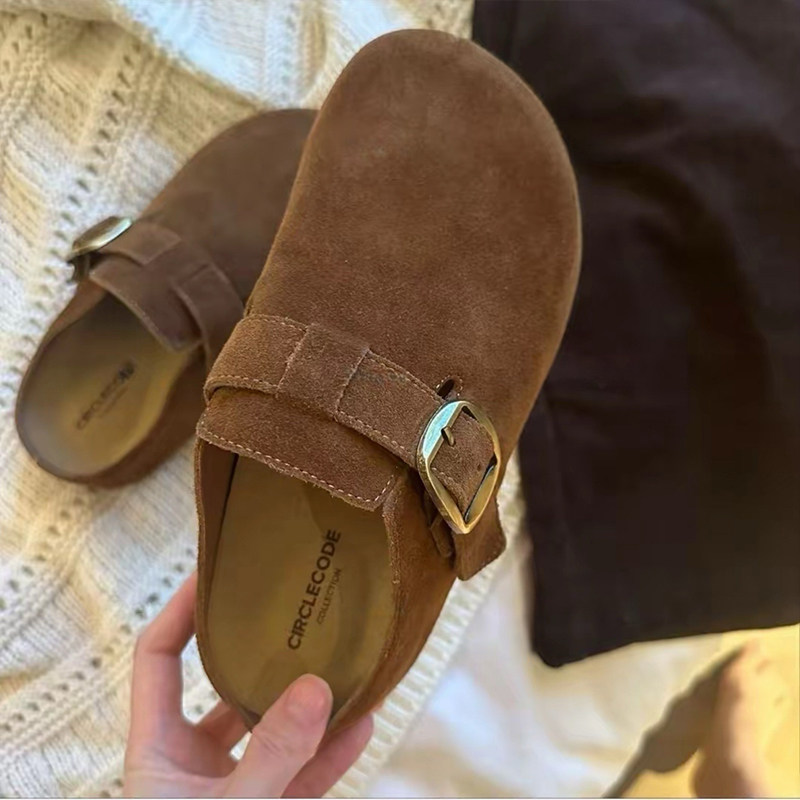 早秋新款复古勃肯半拖鞋2025厚底懒人一脚蹬包头鞋真皮休闲拖鞋女