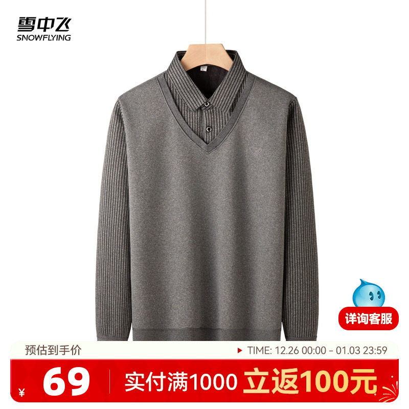雪中飞2025秋新款男士短款加绒加厚Polo领假两件T恤时尚商务休闲