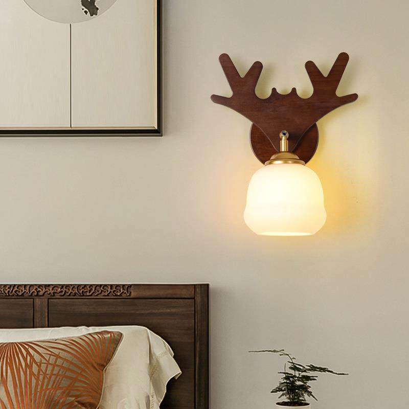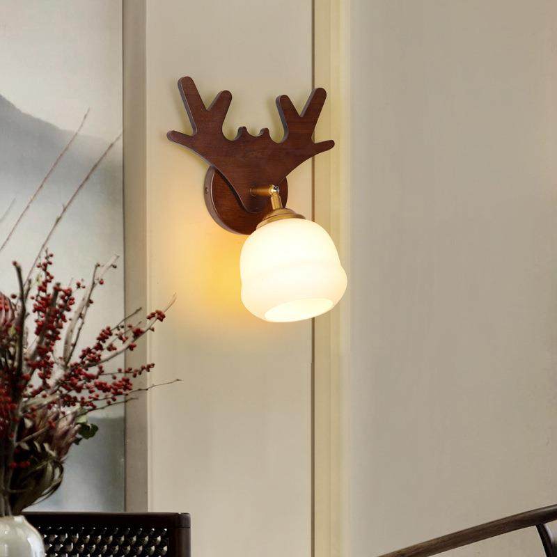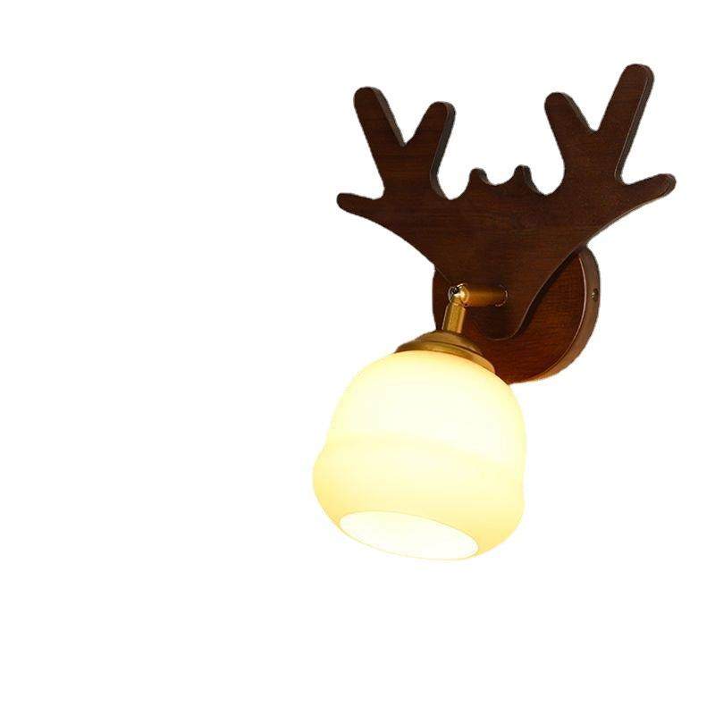 新中式实木床头灯胡桃木色卧室书房过道客厅楼梯墙灯复古民宿壁灯