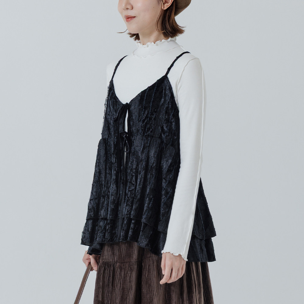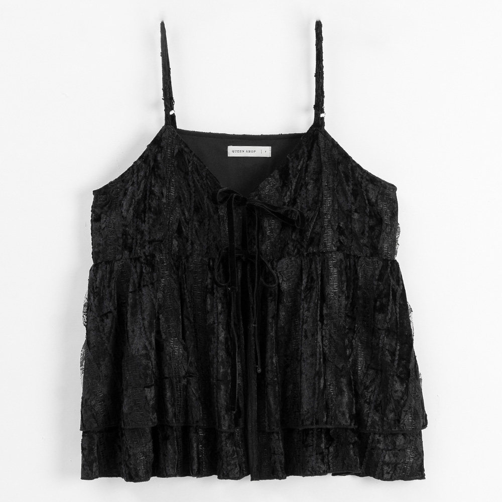 QUEENSHOP 2025秋冬新品女装质感缇花丝绒绑带背心罩衫01099354