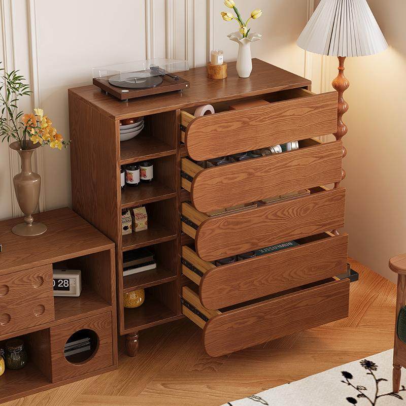 法式复古实木五斗柜靠墙一体储物中古风客厅边柜白蜡木抽屉收纳柜