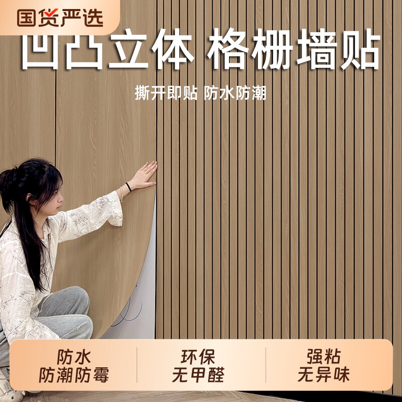 墙壁贴纸3d立体格栅护墙板墙纸自粘防水防潮背景墙掉灰墙专用墙贴