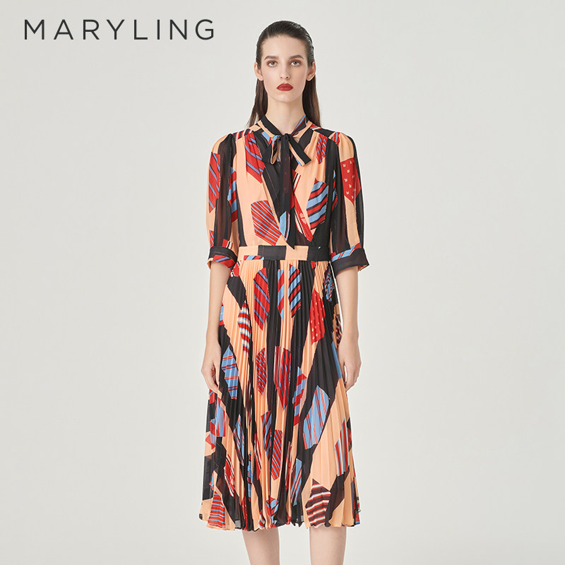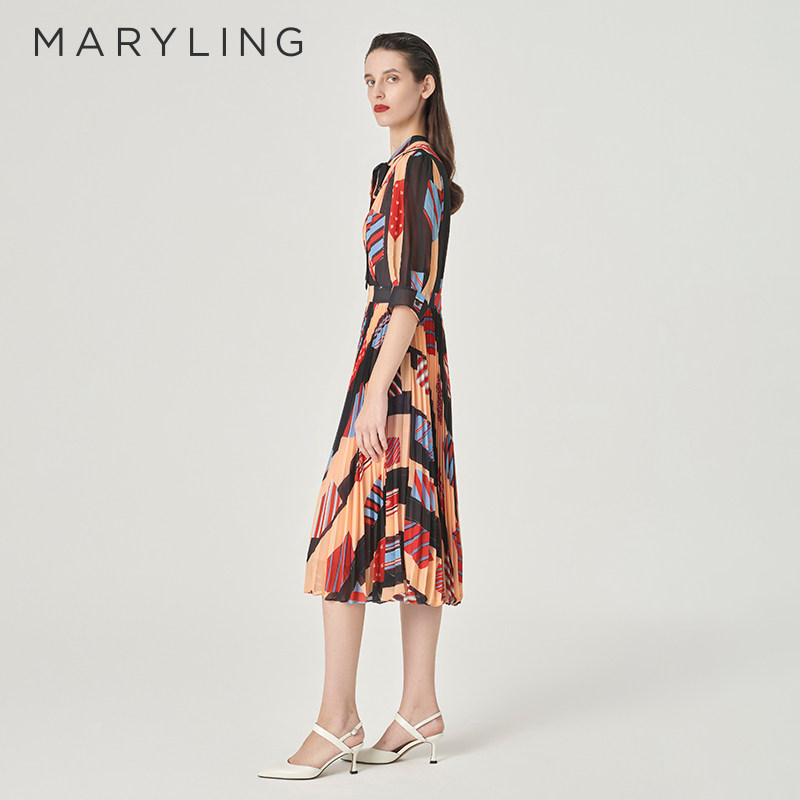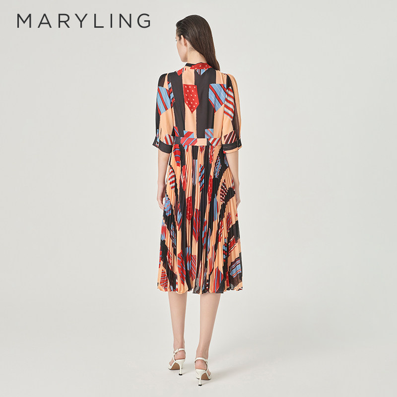 【趣味领带】MARYLING玛俪琳夏新品V领印花连衣裙A1ECW64870