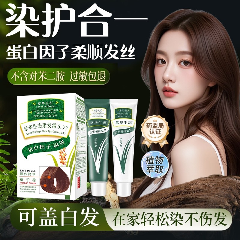 章华生态染发膏染头发剂植遮白发物纯男女黑茶色官方旗舰店正品