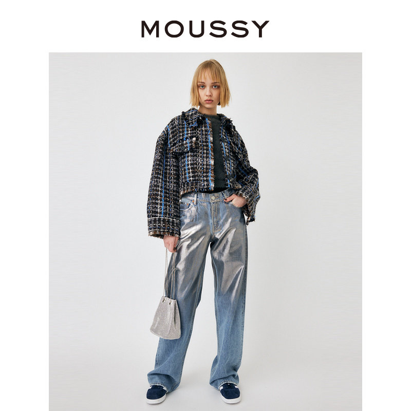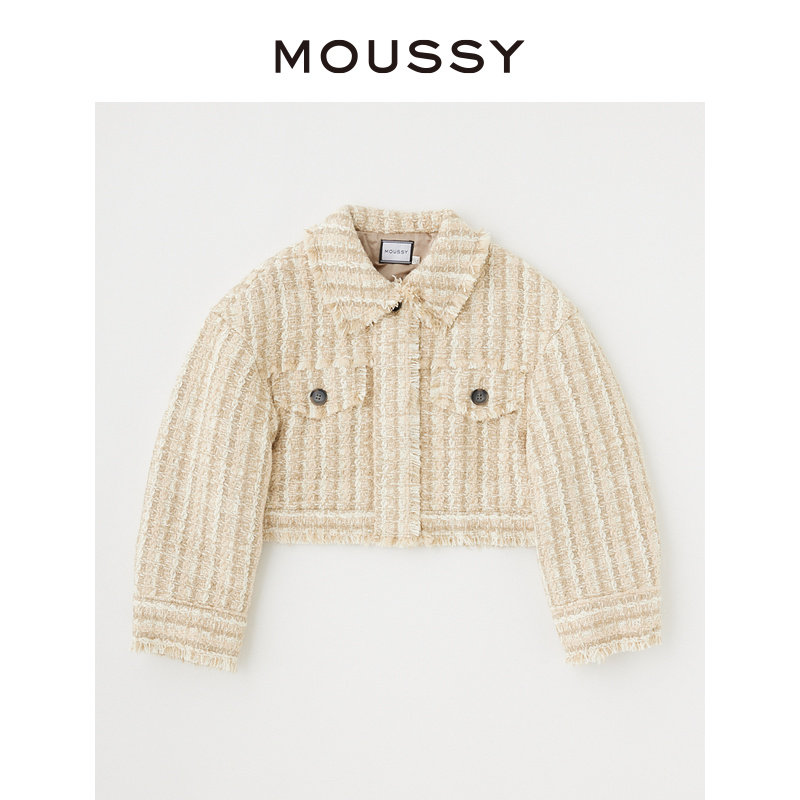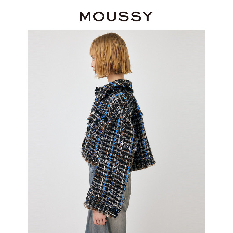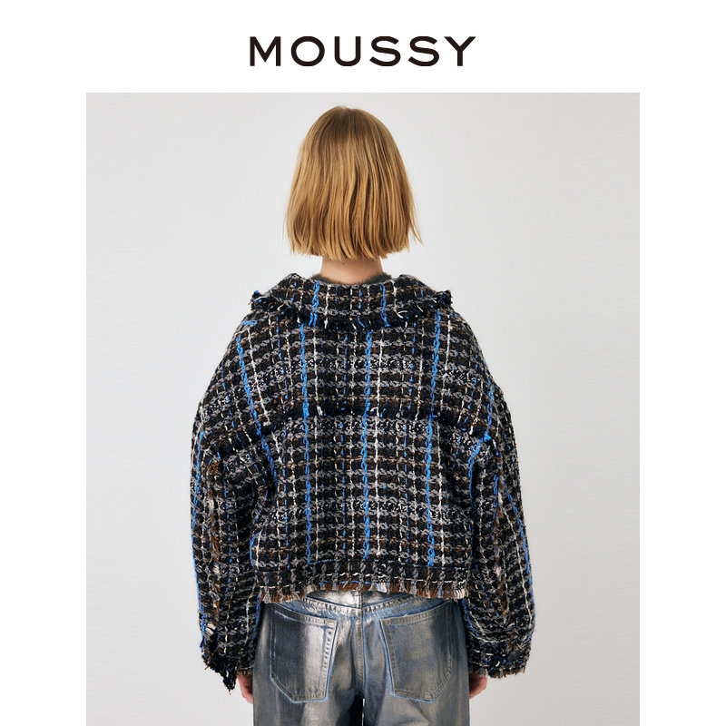 MOUSSY 经典格纹甜美小香风毛边流苏短款廓形外套女010GA730-6530