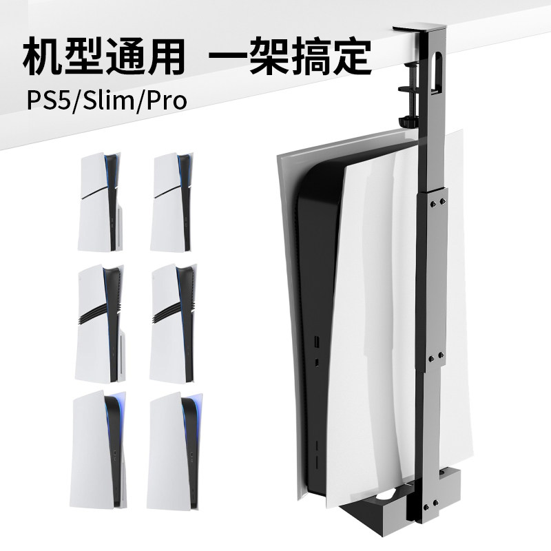ps5/pro/slim主机桌下侧边免打孔4支架金属收纳挂架横放固定悬挂散热桌底座老款置物光驱数字周边配件防尘