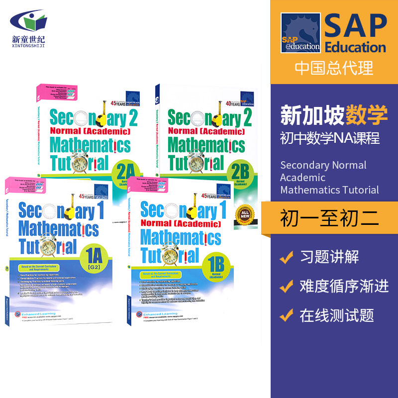 新加坡数学 SAP Secondary Normal Academic Mathematics Tutorial 1A-2B 初一初二 数学练习册 NA课程 基础巩固教辅 英文原版进口
