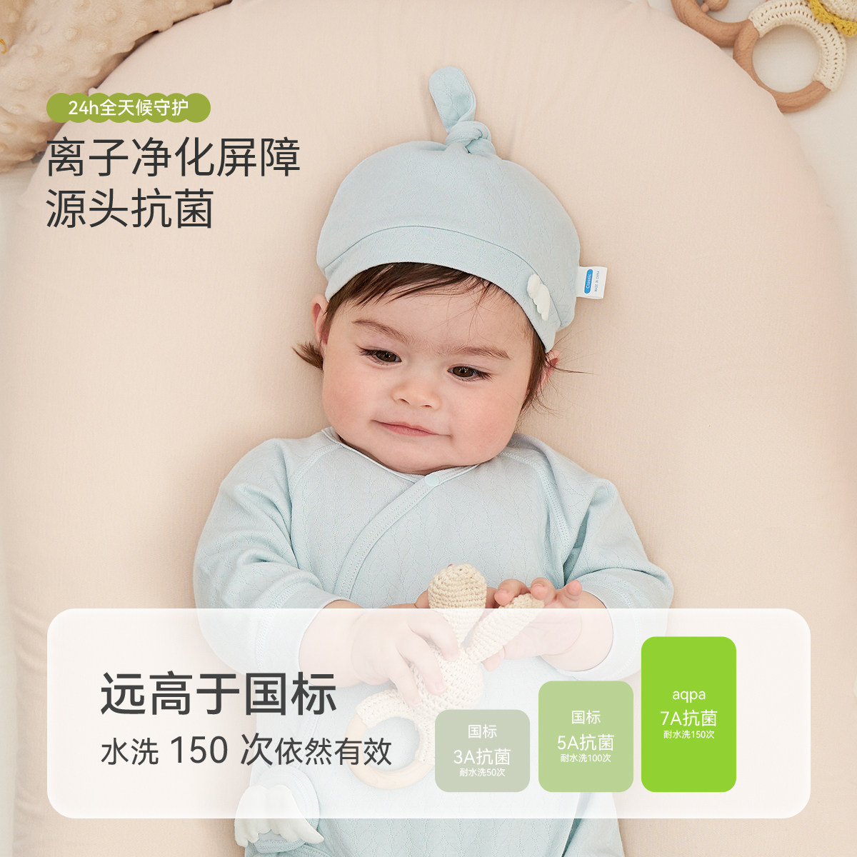 [7A抗菌]aqpa爱帕新生婴儿胎帽莫代尔辫子帽春秋新款宝宝卤门帽子