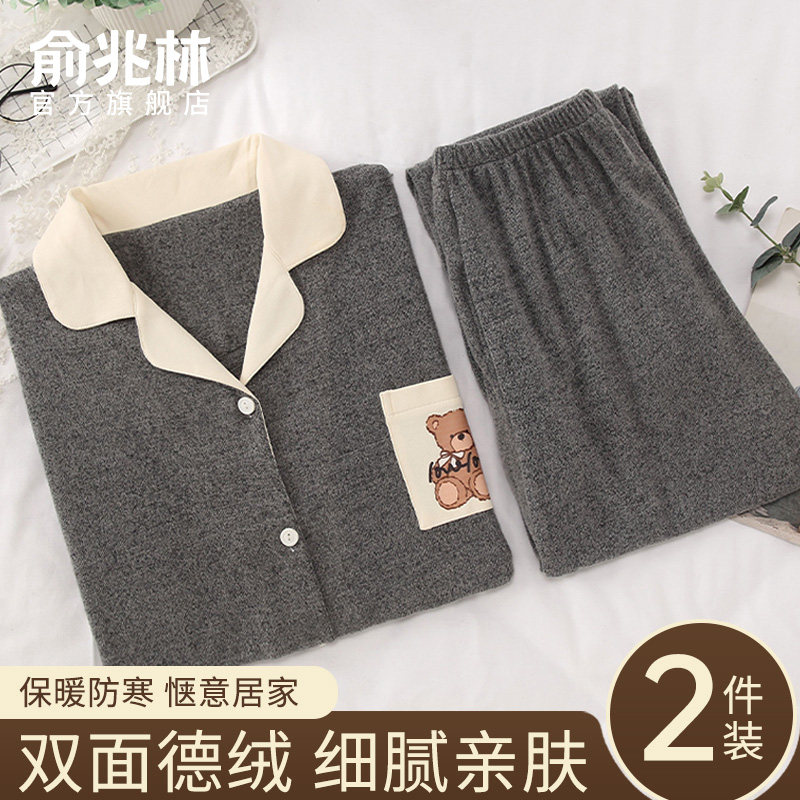 德绒睡衣女秋冬季2025新款保暖加厚磨毛女士加绒家居服套装可外穿