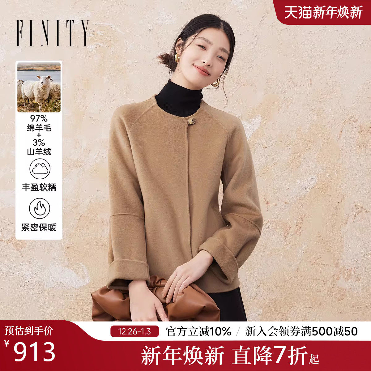 【绒感羊绒】FINITY菲妮迪毛呢外套2025冬季新款双面呢短款大衣女