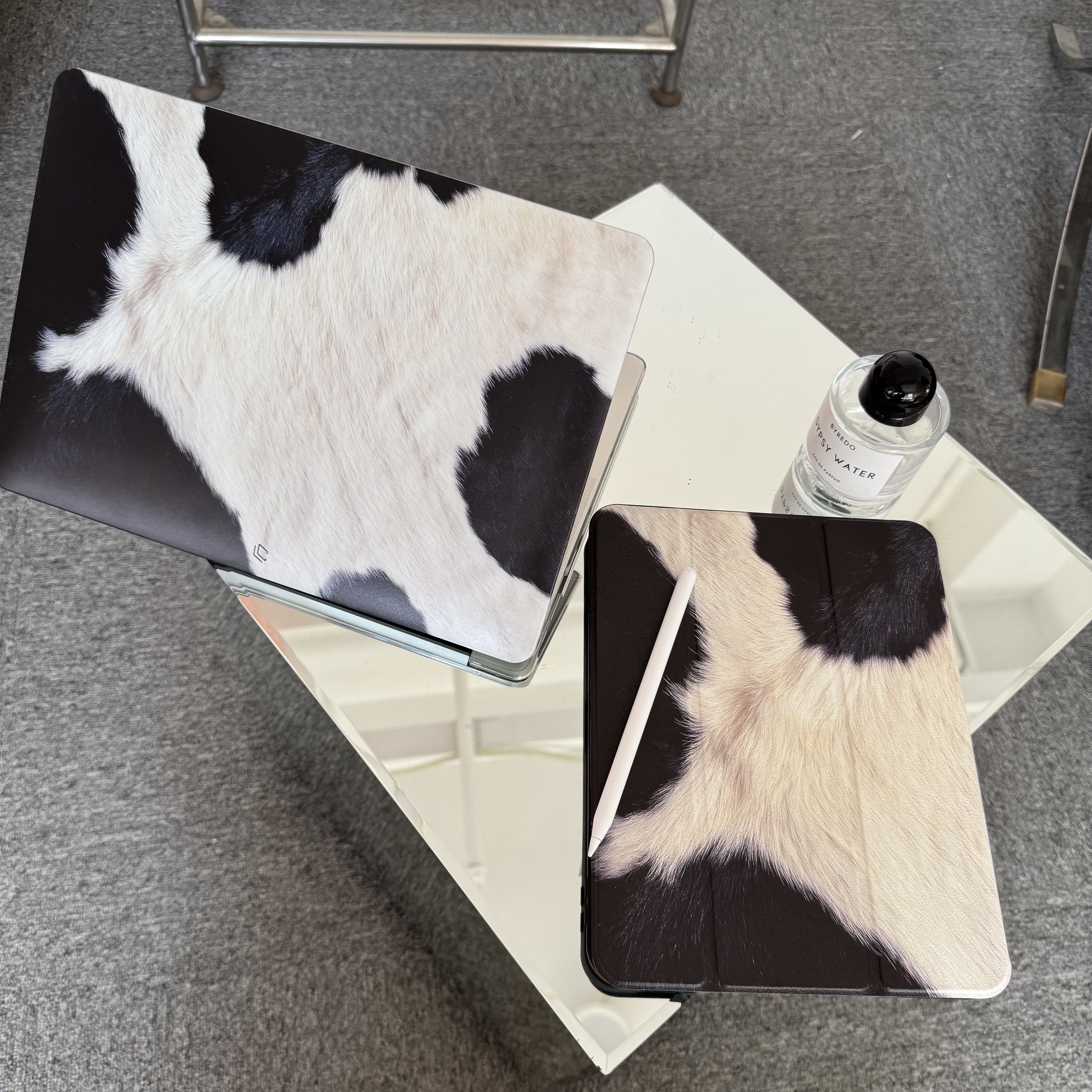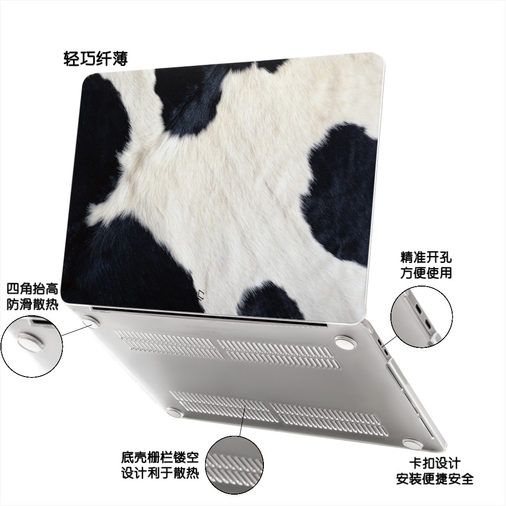 奶牛毛绒图案mac壳平面毛绒苹果MacBook笔记本保护壳华为电脑壳