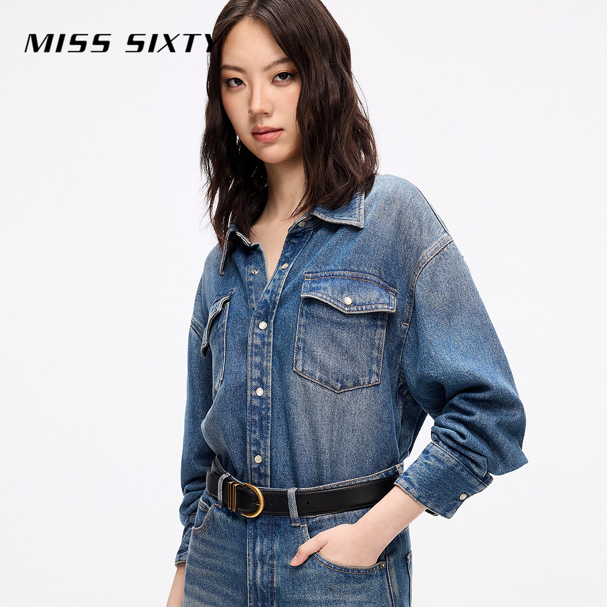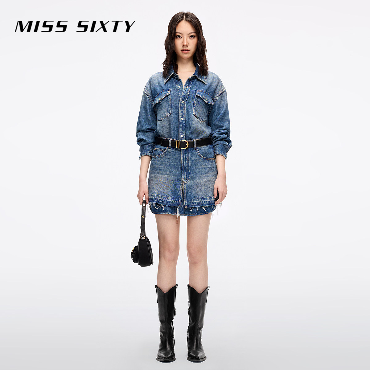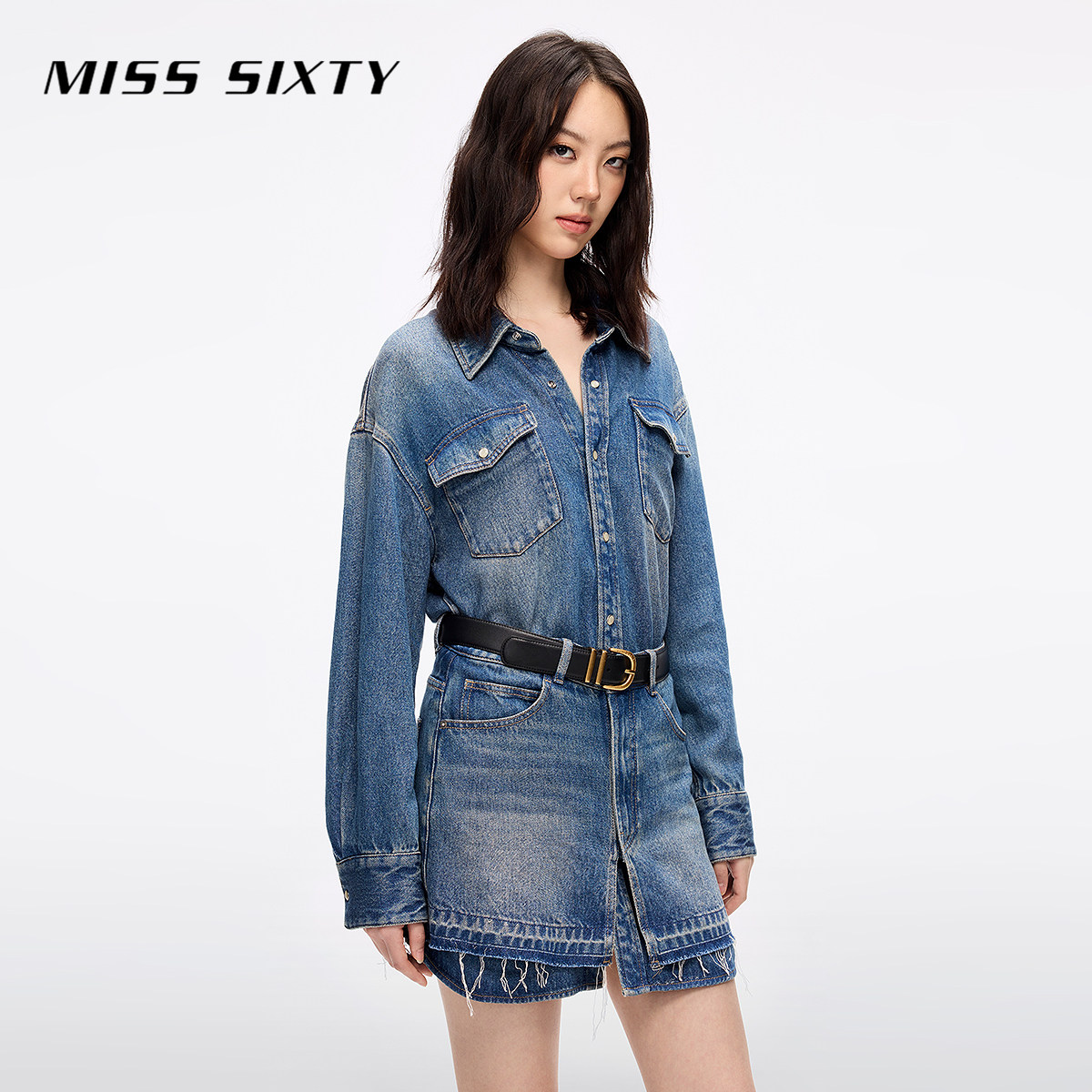Miss Sixty25春夏牛仔连身连衣裙女复古工装假两件设计含莱赛尔